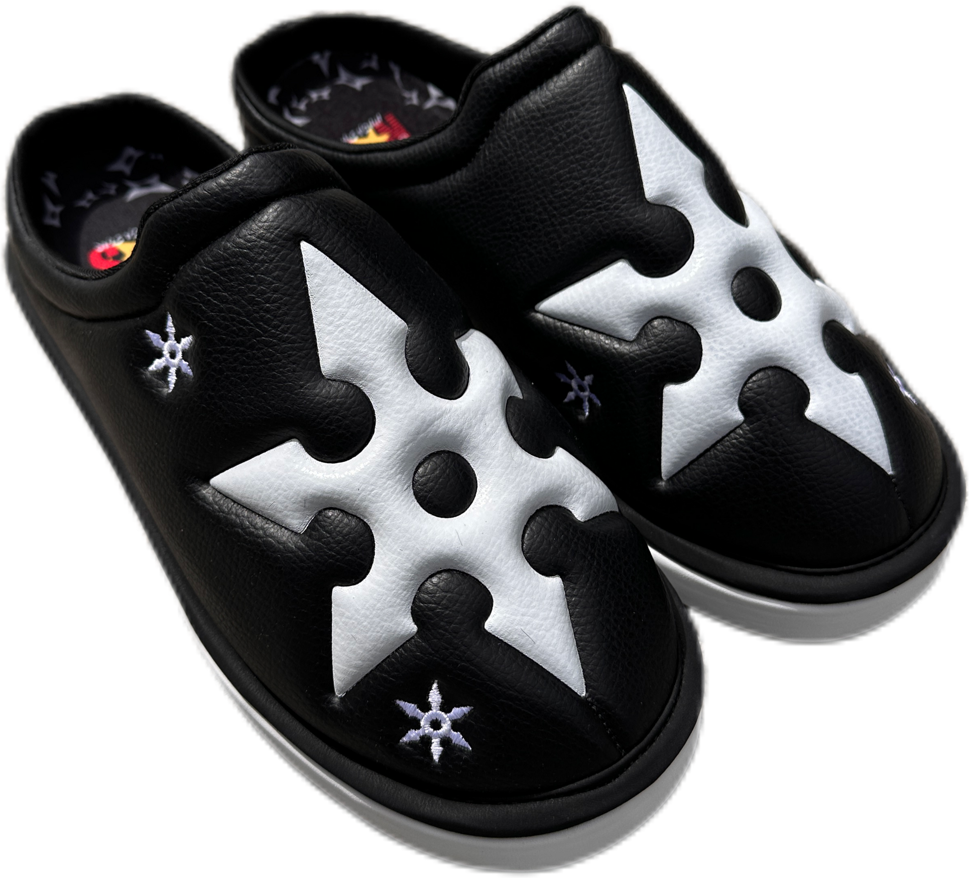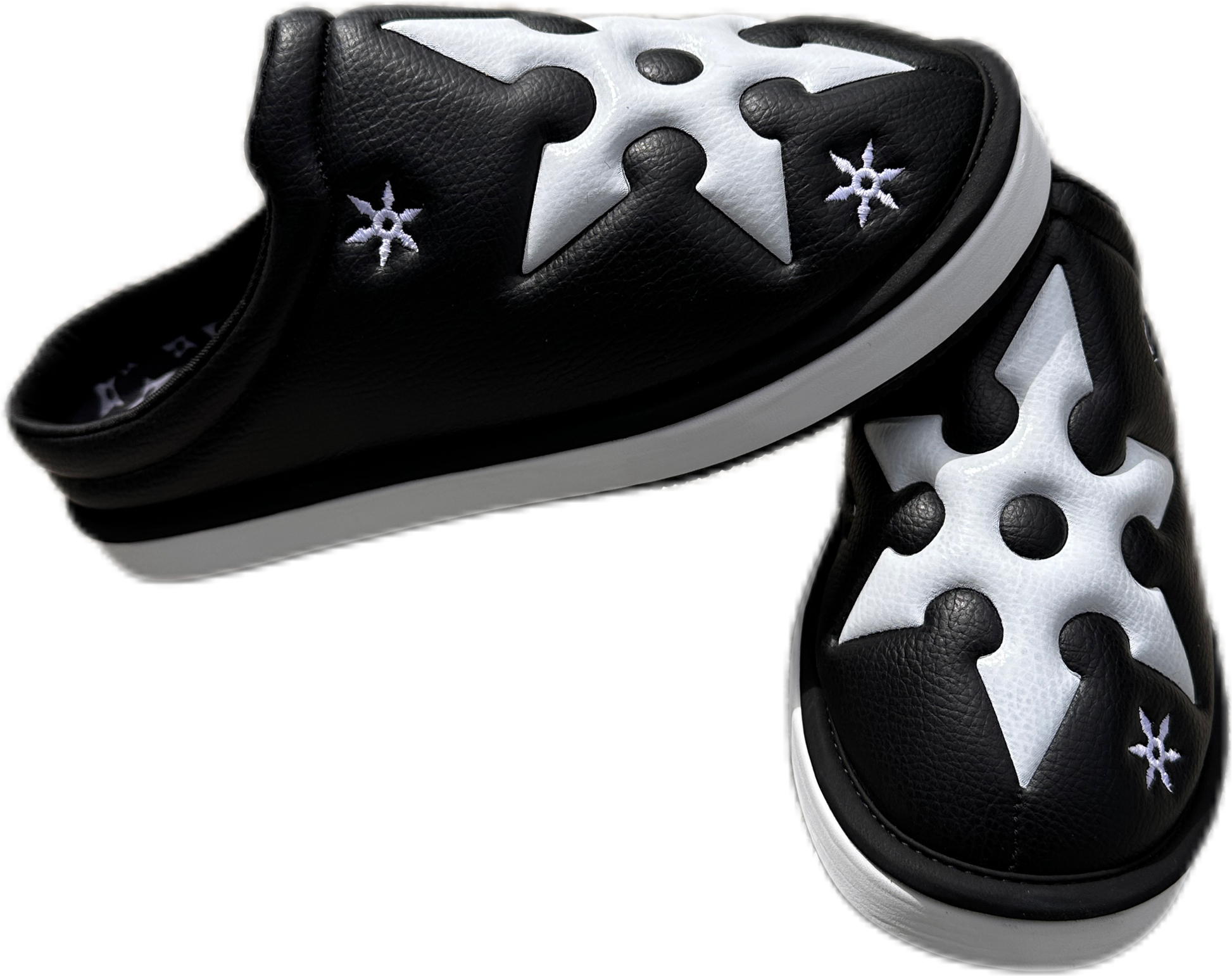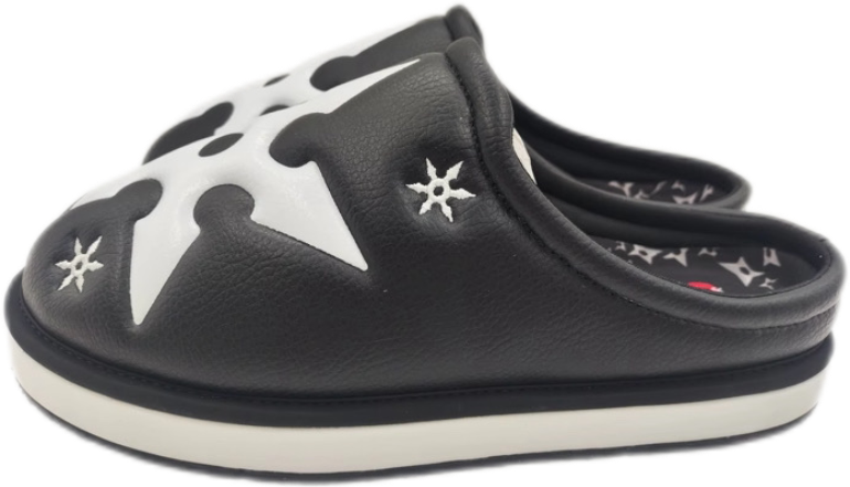 Introducing the FUJIMOTO Ninja Star Mules, where comfort meets cutting edge style. These striking mule slides feature a sleek, minimalist design embellished with intricately crafted ninja stars, blending modern fashion with a touch of bold edginess. Crafted from premium materials, the FUJIMOTO Ninja Star Mules offer a luxurious yet lightweight feel, perfect for all-day wear. The slip-on design provides ease and convenience, while the decorative throwing stars add a rebellious flair, making them ideal for those who want to make a statement. Step out with confidence and a ninja's stealthy grace in these unique, trend setting slides.