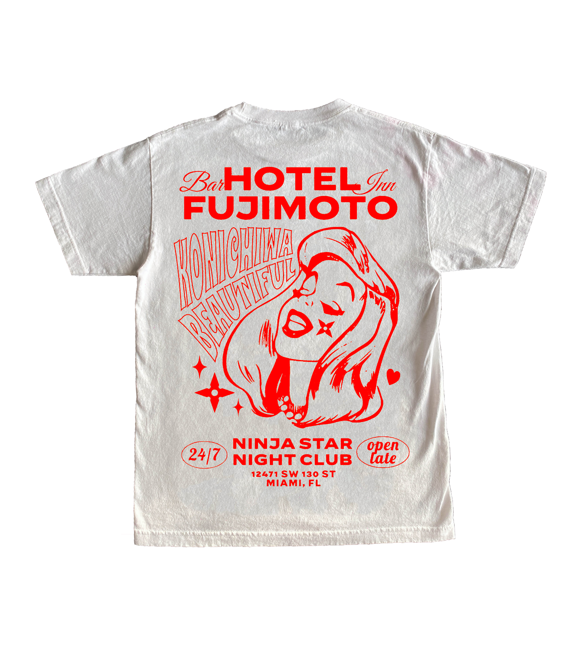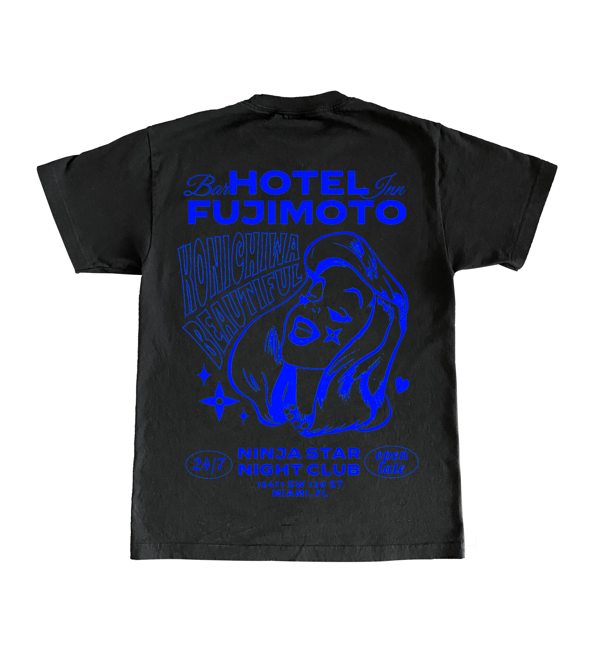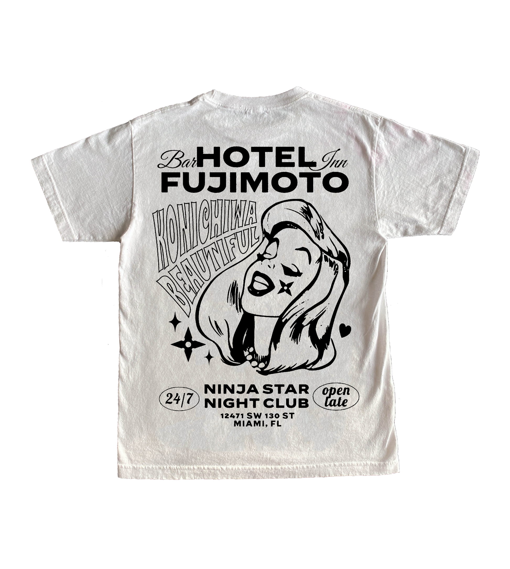 Classic super soft 100% Preshrunk cotton shirt with Fujimoto graphics on front and back.