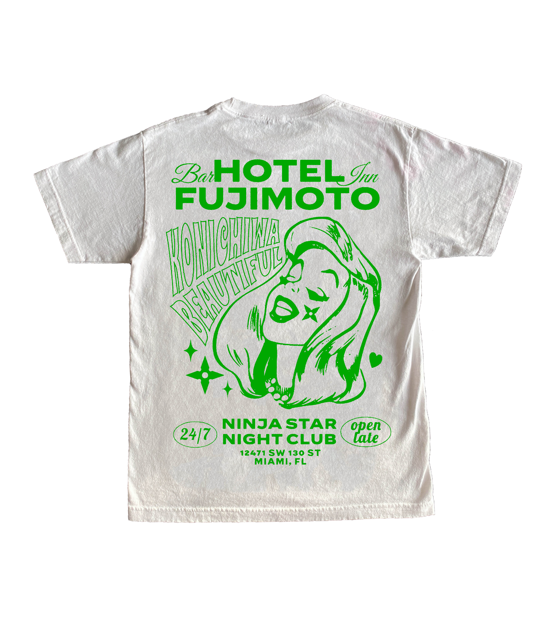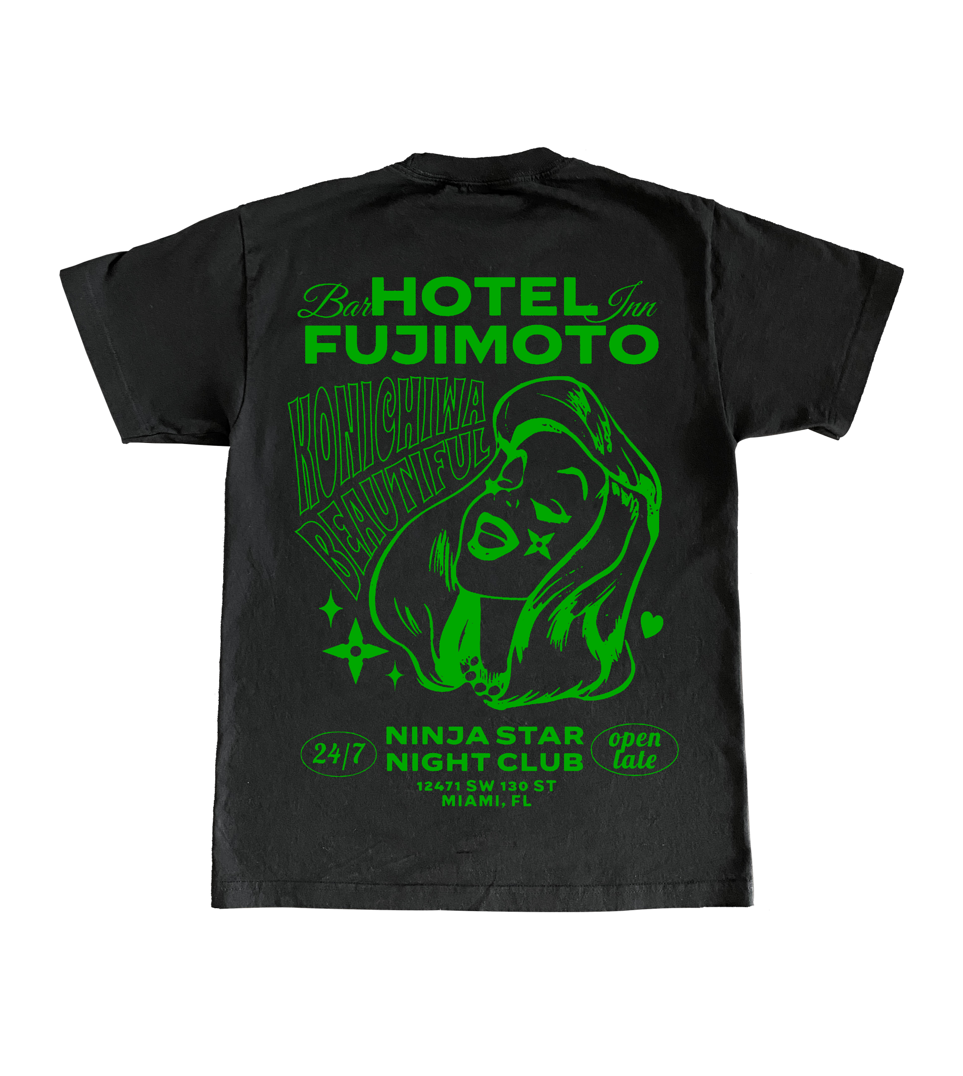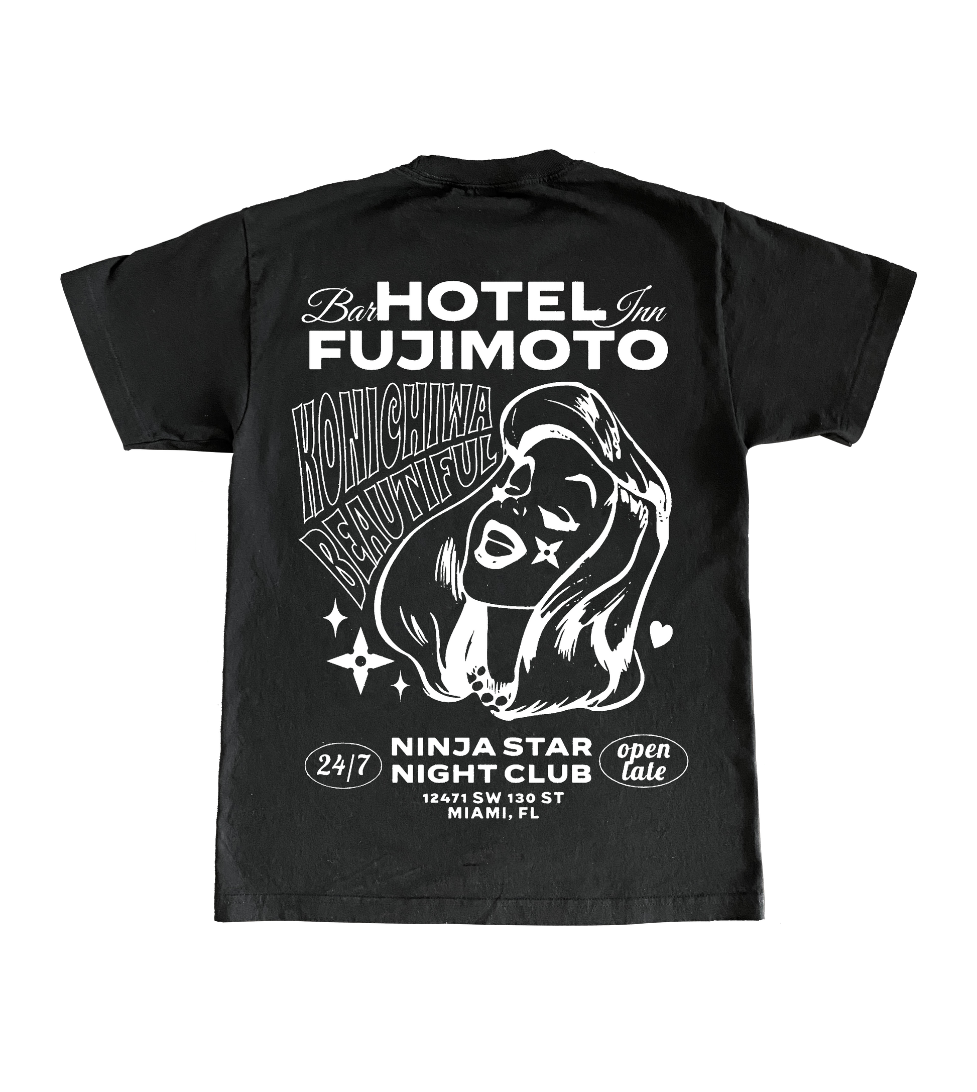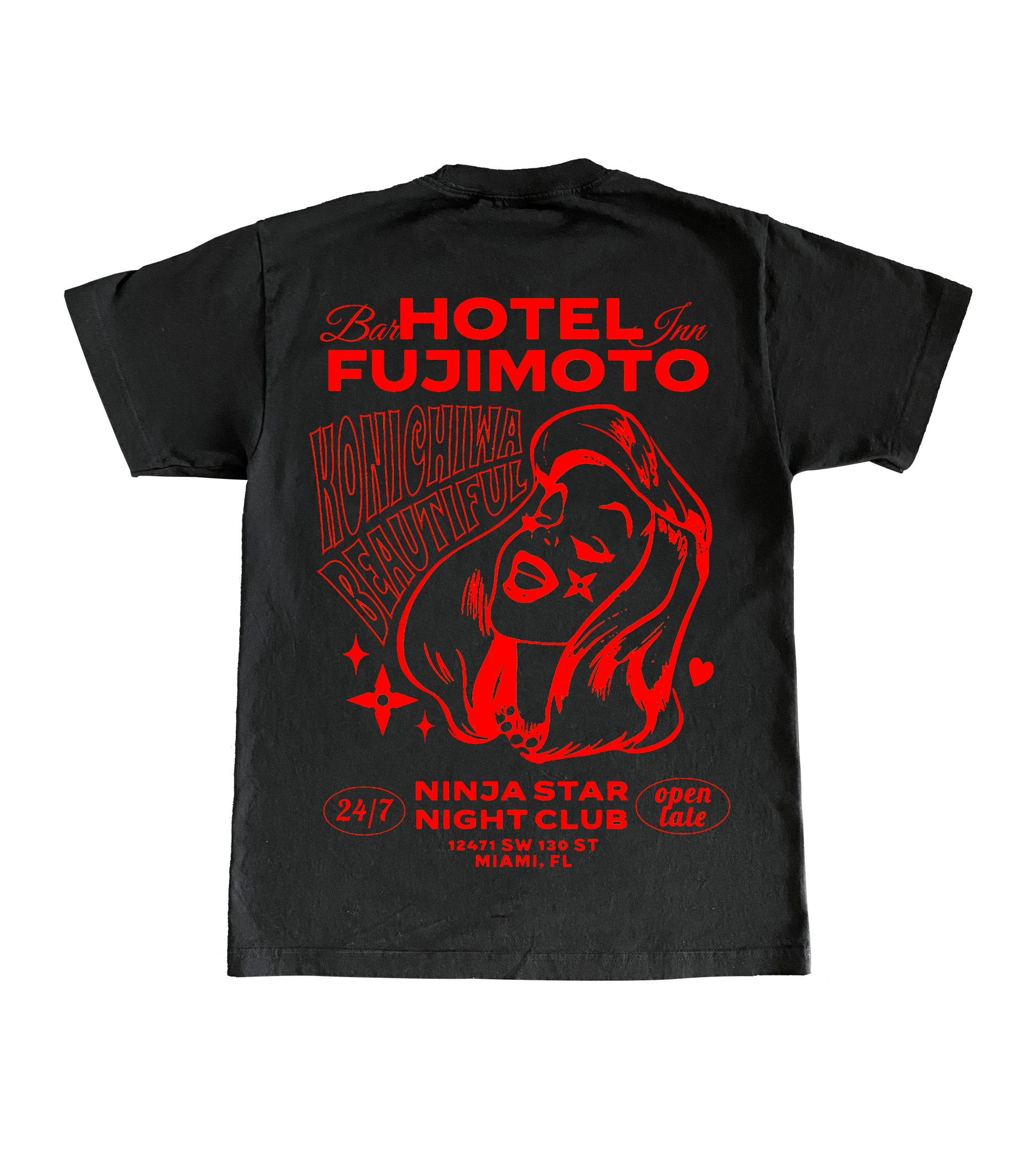 Classic super soft 100% Preshrunk cotton shirt with Fujimoto graphics on front and back.